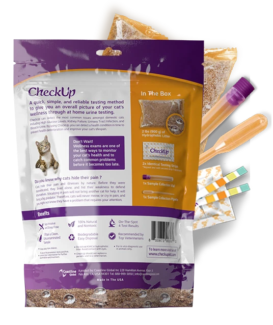 CheckUp can detect the most common issues among domestic cats including high glucose levels, kidney failure, urinary tract infection (UTI) and blood in the urine. By using CheckUp, you can detect a health condition in time to prevent health deterioration and improve your cat’s lifespan.