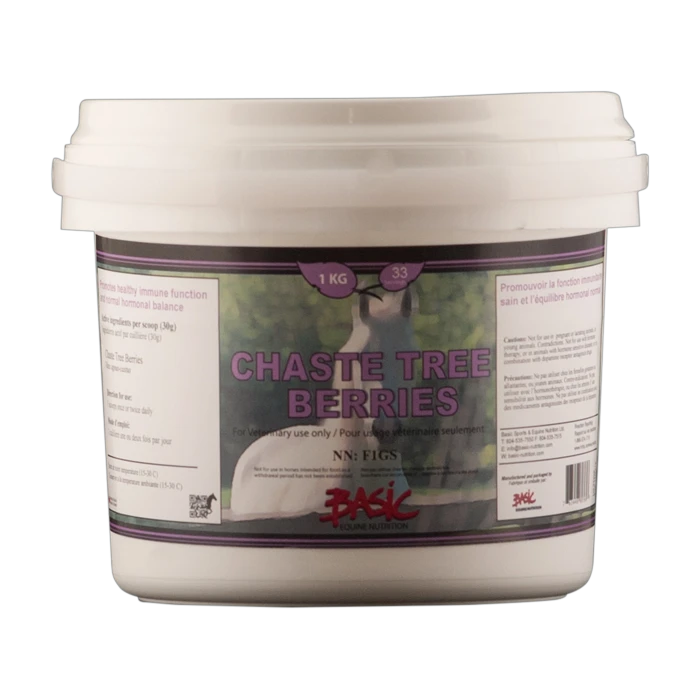 CHASTE TREE BERRIES act as a hormonal normalizer. Beneficial in preparing mares for breeding, helps regulate their seasons. Aids in relieving symptoms of the normal heat cycle, great for tense and irritable mares. Chaste Tree Berries may also be used on geldings, which show hormonal related behavioral issues. Also, supports milk production in nursing mares. Chaste tree berries also regulates the pituitary gland and the hypothalamus, therefore making it a great supplement for horses with Cushings Disease.
