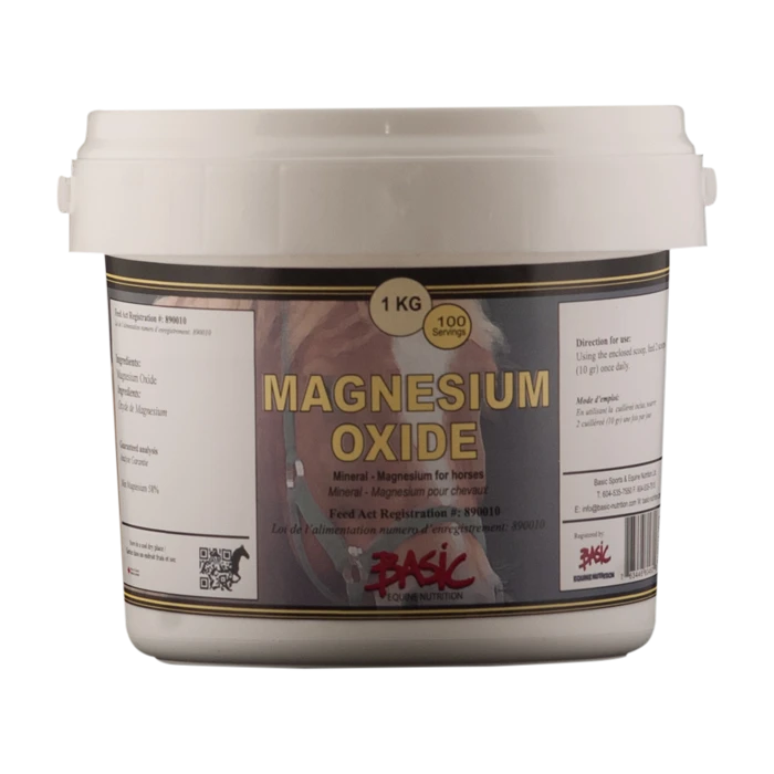 The horse’s body is about .05% magnesium, or about one half pound in a mature horse. It is an activator of many enzymes involved in energy production. Our Magnesium Oxide Pure assists in calcium and potassium uptake and plays a role in the formation of bone, and in carbohydrate and mineral metabolism.