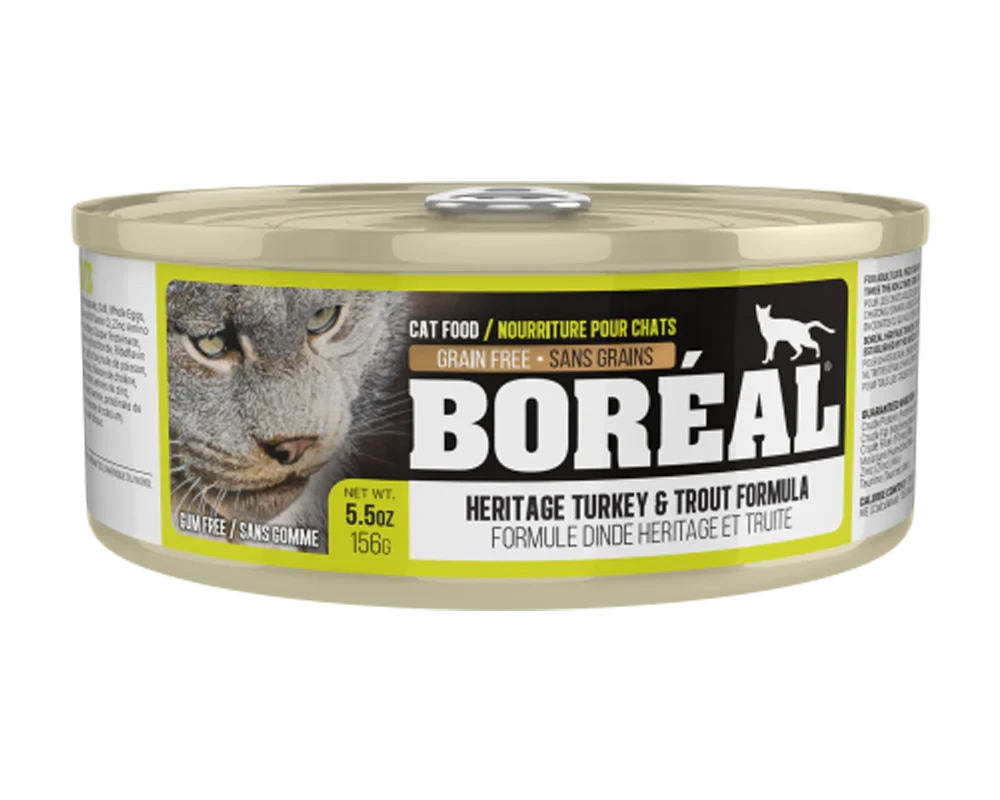 Our new reformulated Boréal canned cat foods have 95% of the protein from Meat/Fish and are designed to have almost no carbohydrates or starches. Our goal is to help lower your pets risk of unwanted weight gain. Our Canadian-made line is gum free and gluten free.