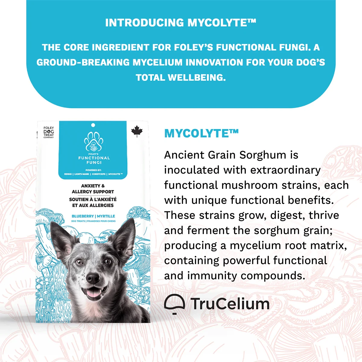 Foley’s Functional Fungi Dog Anxiety & Allergy treats offer a natural solution for dogs struggling with anxiety or stress. These treats effectively alleviate allergy symptoms, such as itching and redness, providing a sense of relaxation and comfort. With its carefully selected ingredients, this formula is gentle on sensitive pups.