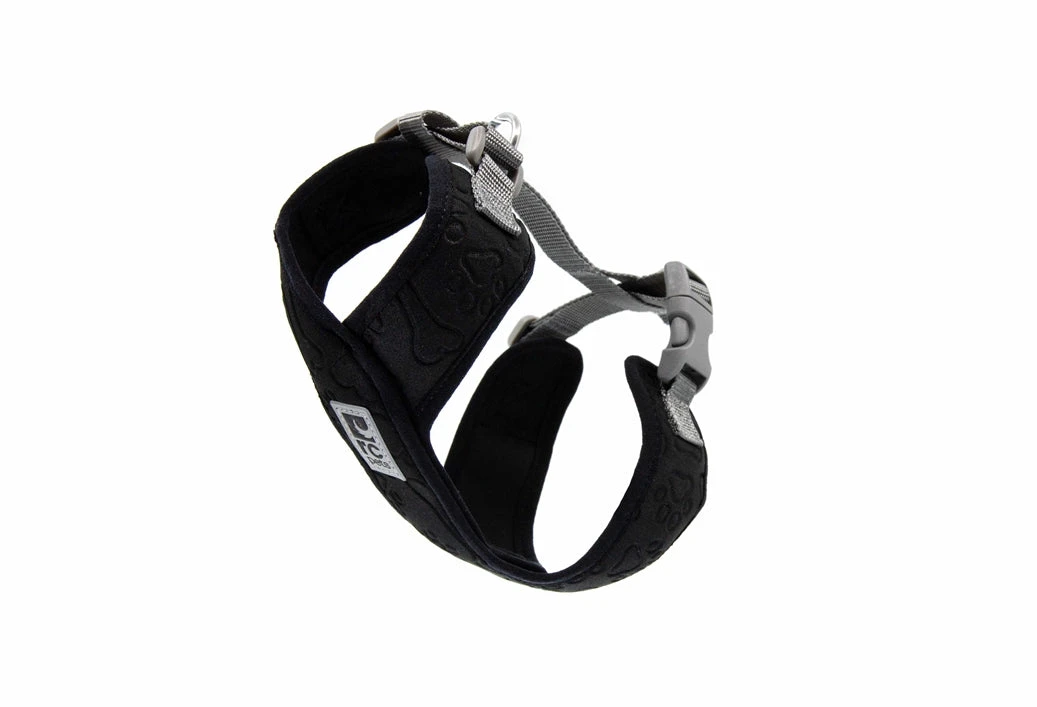 Does hot summer walks get you down? The Swift Comfort Harness has a streamlined x-shape to minimize coverage and reduce pressure on the neck area. Made with a fun embossed neoprene in bright cheerful colours this harness is excellent for little dogs that like a cool style. Adjustable at both the neck and girth, you are sure to find the perfect fit. Easy breezy