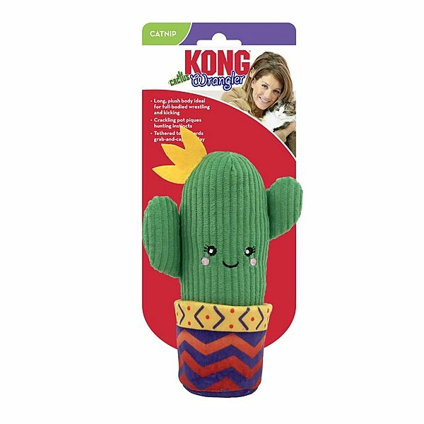 Kong Wrangler Cactus’ long, robust build rewards instinctual full-body wrestling and hind-paw kicking. The crackling potted base continues the engagement by piquing natural instincts and adds to the fun with a tethered design that delights catch and grab behavior. The two toys tethered together also have the added benefit of toy-loss prevention. Vary playtime by planting treats or additional catnip in the pot adding to the thrill of discovery for curious kitties. Kong North American Premium Catnip help make this kitty cactus bloom with long-lasting fun.