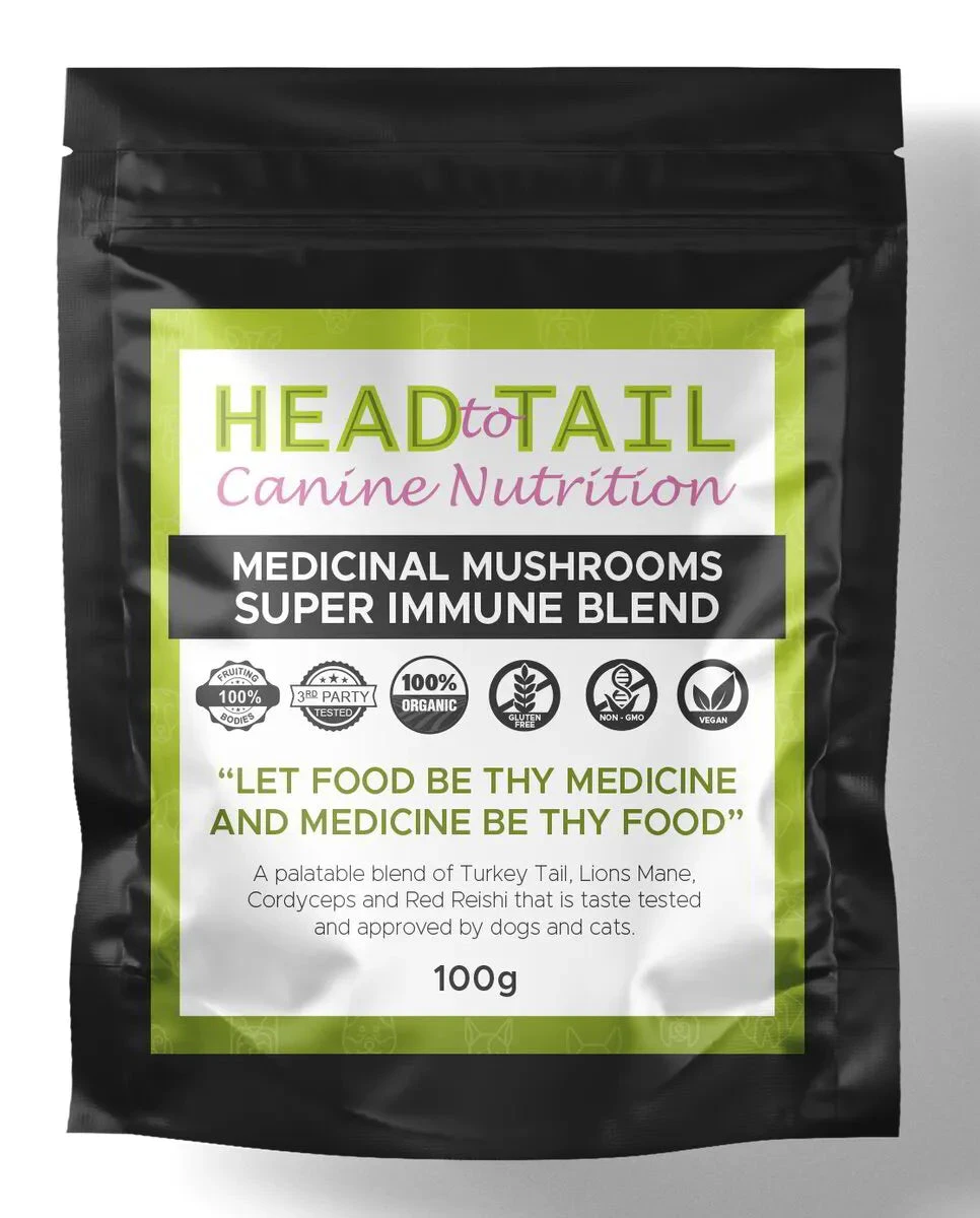 Head to Tail Canine Nutrition only uses 100% organic fruiting bodies which are rigorously tested and guaranteed for active compounds.