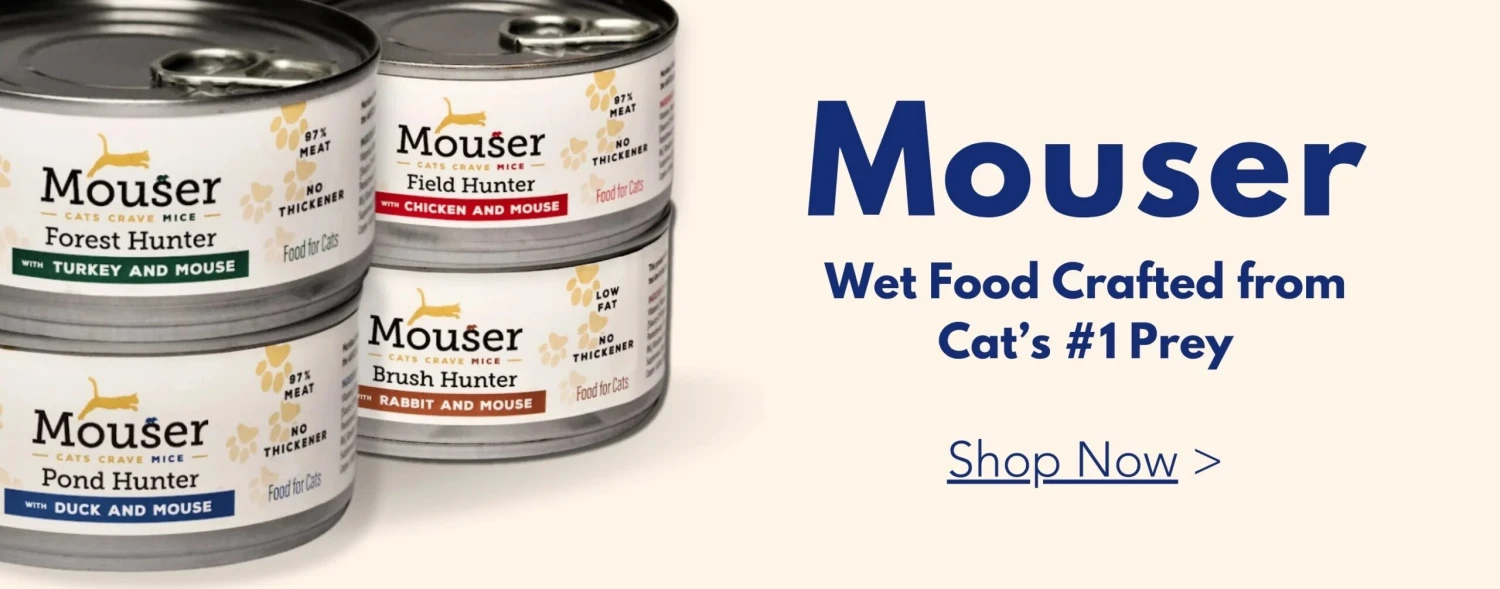 The world’s first cat food with cat’s most natural prey: mice. All of our products are sourced are made in the USA and packaged in BPA free cans. Mouser is 97% meat, gluten free, with no carbohydrate fillers and no needless thickener.
