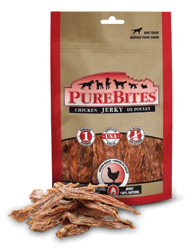 PureBites® Chicken Jerky dog treats are made with only 1 ingredient; 100% Pure USA Sourced Chicken Breast with NO added Glycerin. Dogs love the taste of PureBites® because our treats are gently dried to lock in the aroma, texture and freshness they crave. Dog parents love PureBites® because our treats are 100% pure and rich in nutrients for a happy & healthy life.