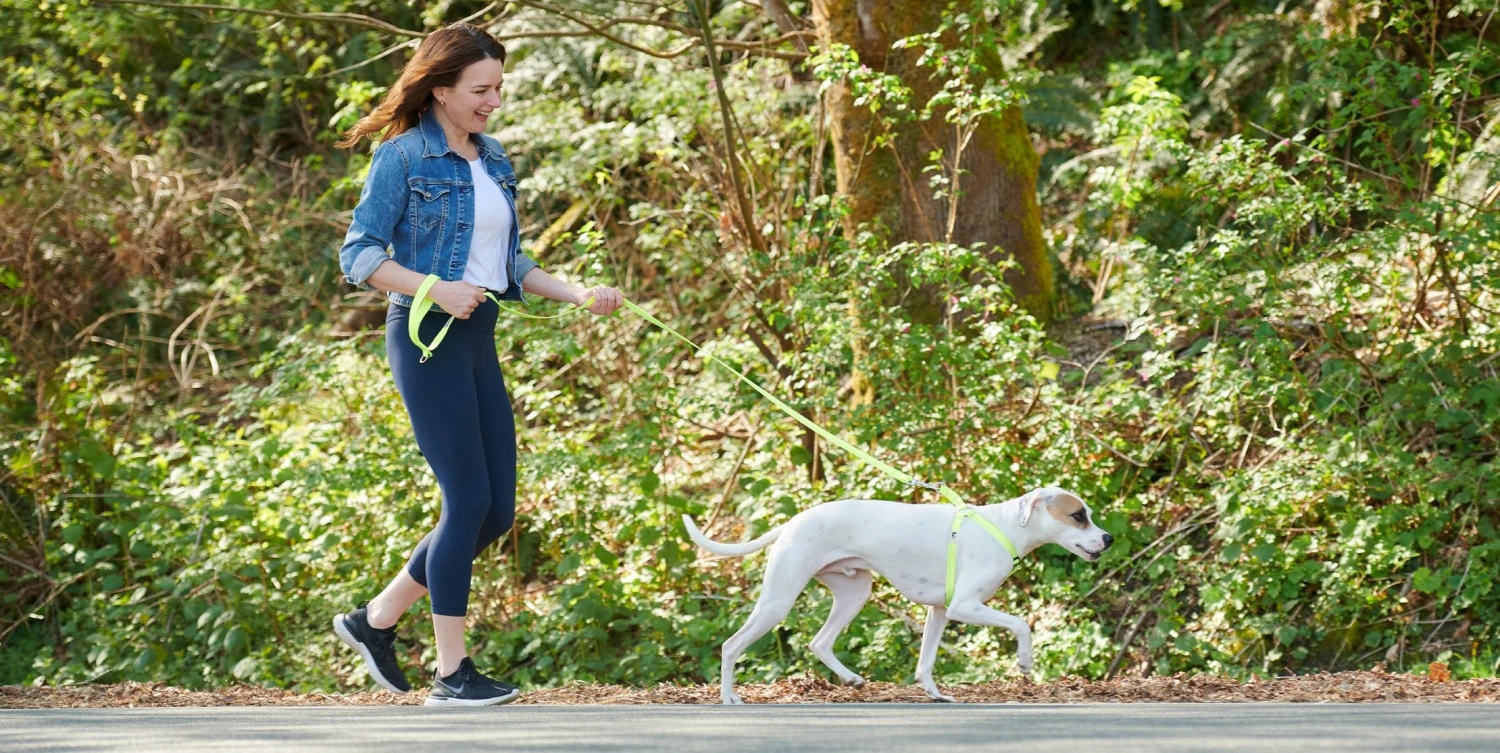 Ideal for everyday dog walking, our Primary Step In Harness is a lightweight and comfortable alternative to leashing up at your dog’s collar. Simply lie the open harness on the ground and step your dog’s paws in. Pull the harness up, then secure the buckle, clip on your leash and enjoy the walk!