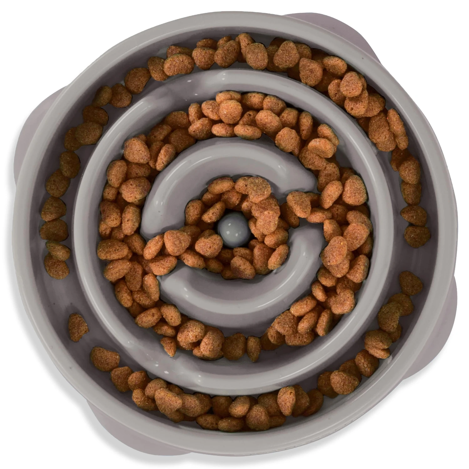 Why do dogs feel like eating is a race? We’re not sure, but we solved the problem anyway. With meal-lengthening ridges, deep grooves, and challenging mazes, Outward Hound Fun Feeder Slo Bowls keep pups engaged for up to 10x longer at chow time. By creating a fun, healthy eating pace, our slow feeders help reduce obesity and bloat and improve your dog’s digestion for happier, healthier pups. Available in multiple colors, sizes, and slow levels – Slow, Slower, Slowest – including a slow bowl for flat-faced breeds, there’s an option for your unique dog and their eating speed. Our slow feeders are non-slip to prevent sliding and spillage, top rack dishwasher safe, BPA, PVC, lead, and phthalate free, and available in small (3/4 cups), medium (2 cups) and large (3 – 4 cups) to hold an entire meal no matter your dog’s size. Go beyond the boring ol’ dog bowl, and make mealtime more fun!