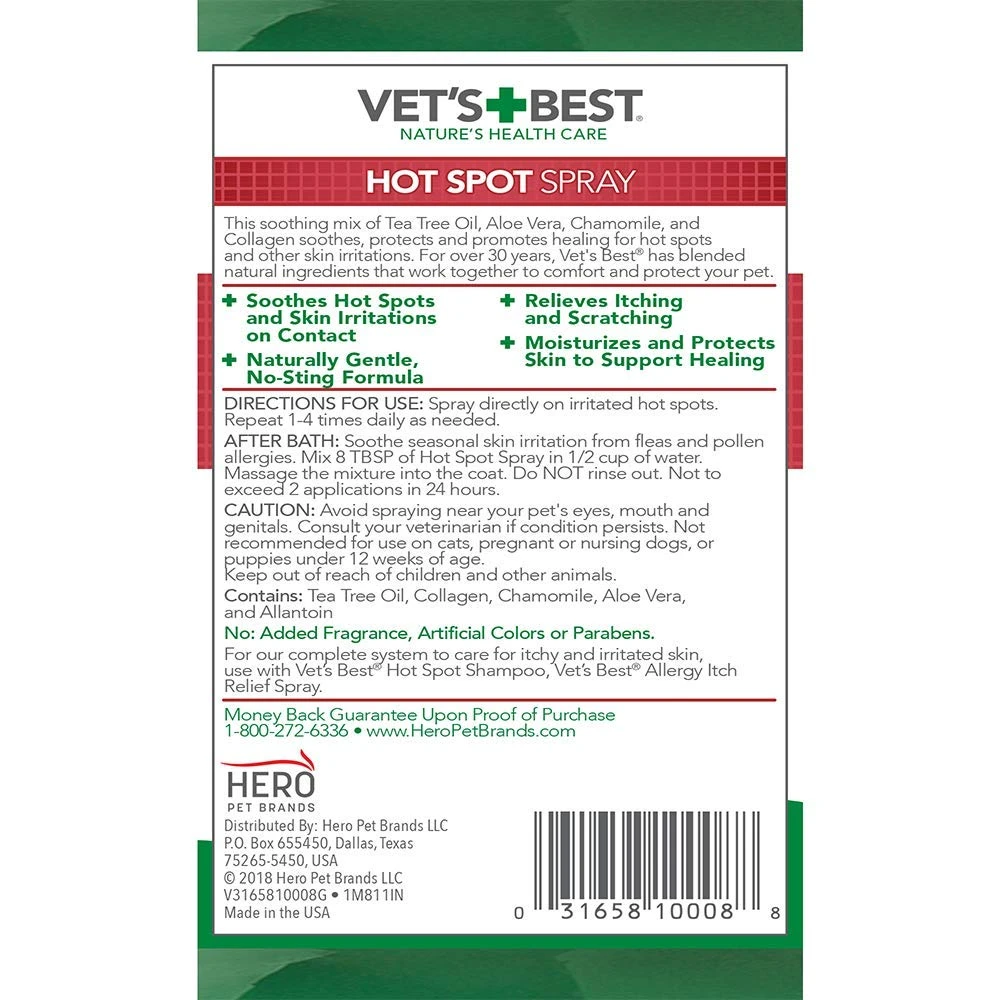 - Immediate relief – vet’s best hot spot spray for dogs soothes seasonal skin irritation from flea and pollen allergy dermatitis